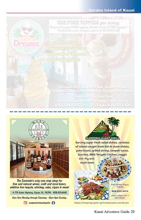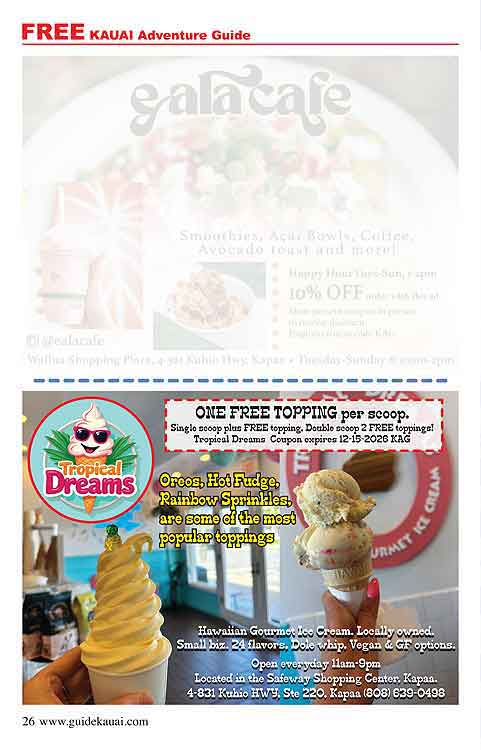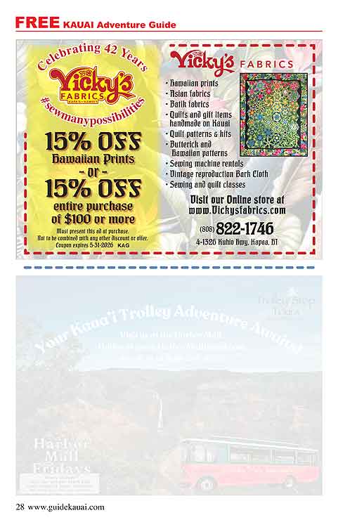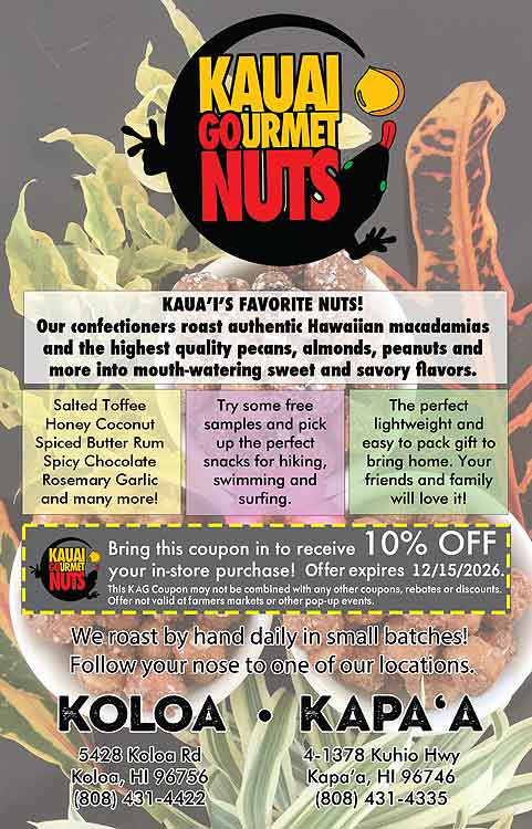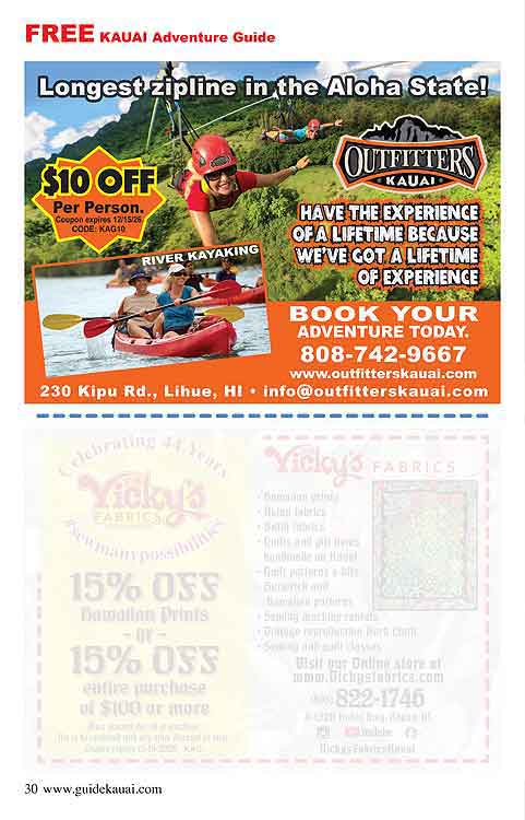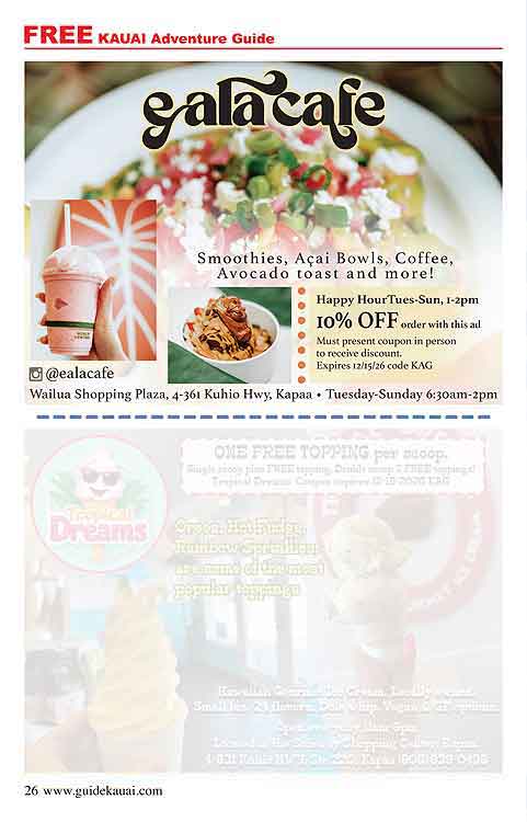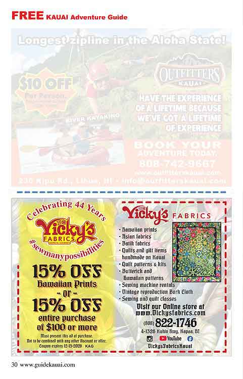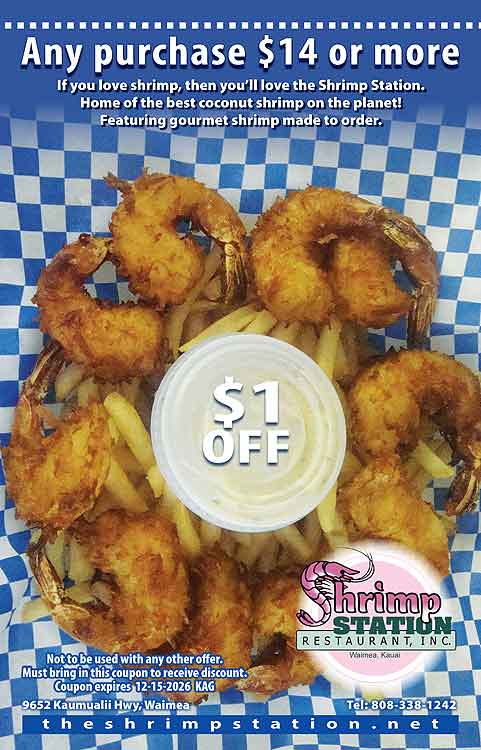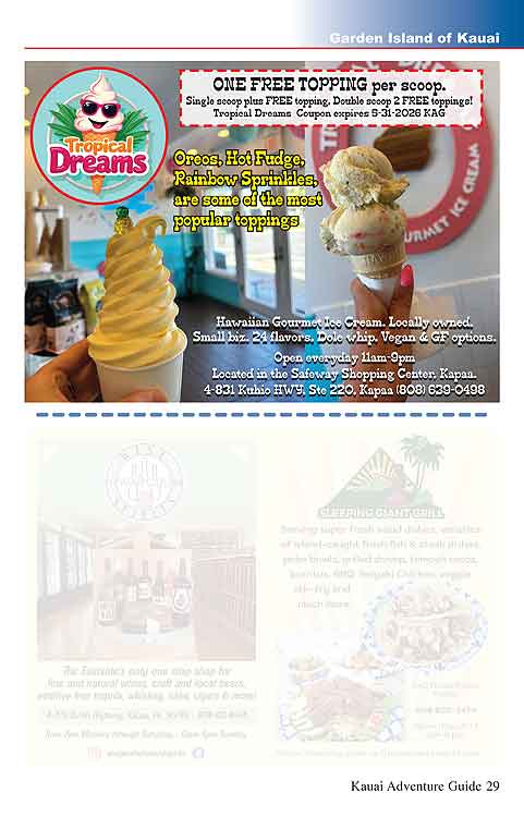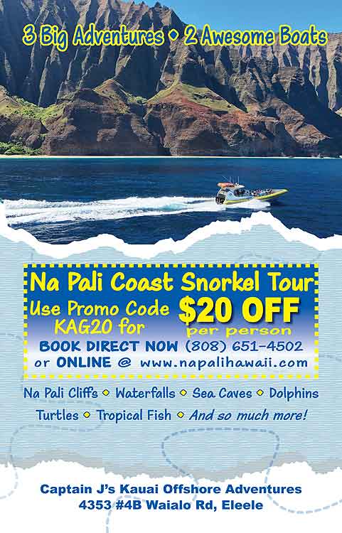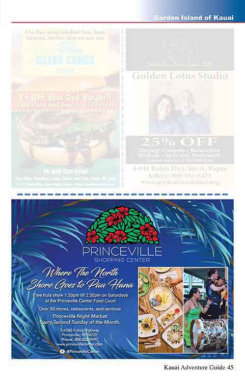 Great FREE coupons and discounts on Kauai Activities, Dining, Services and Shopping.