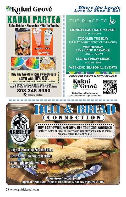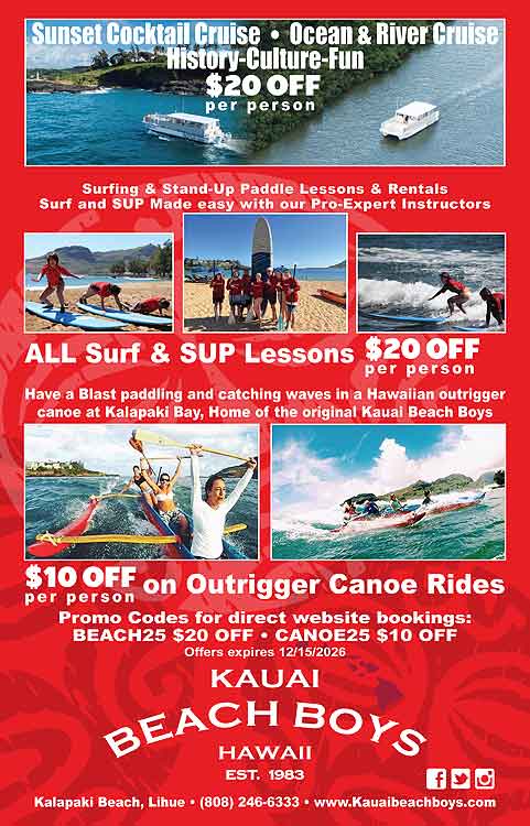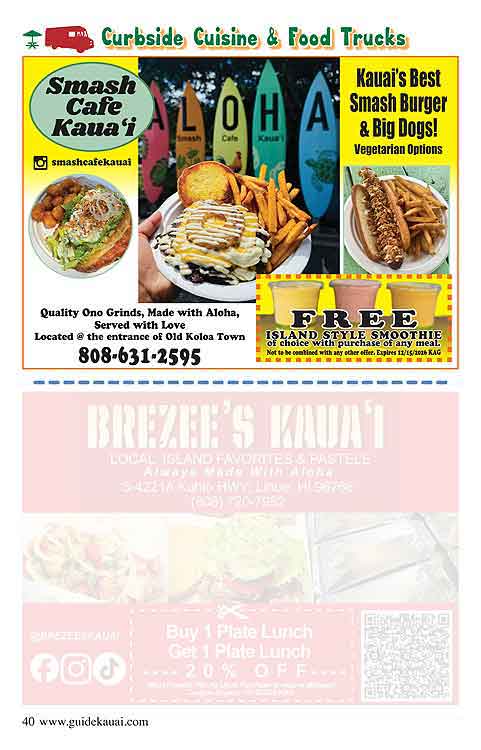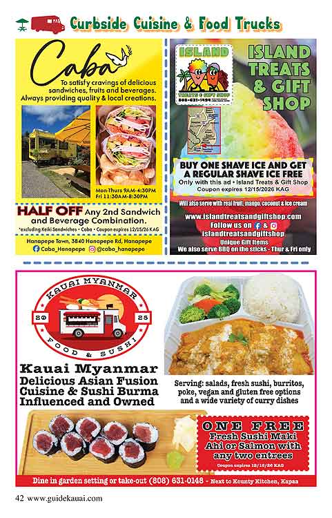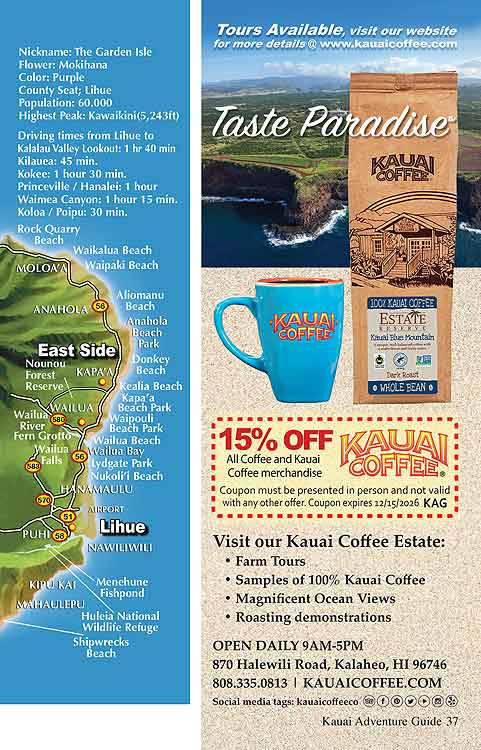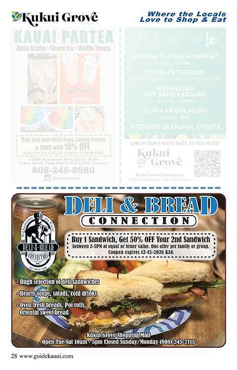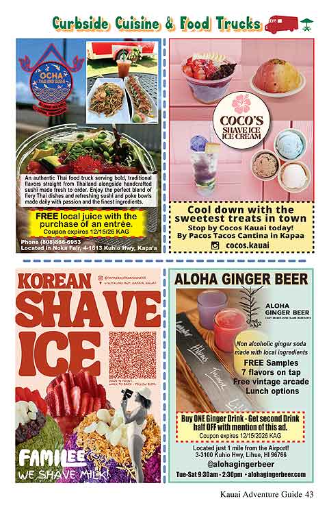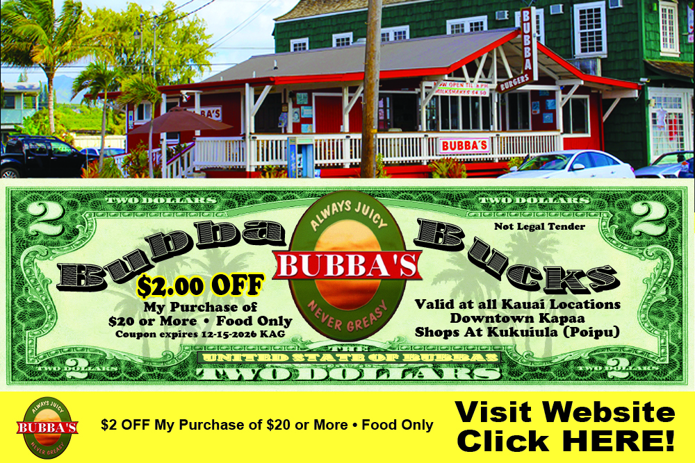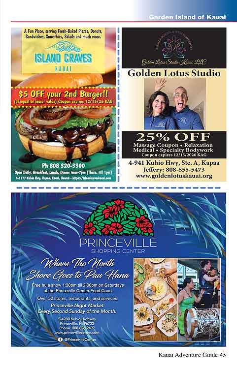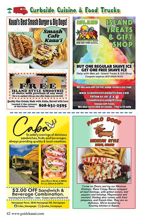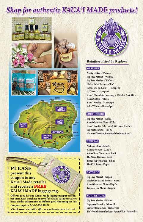Great FREE coupons and discounts on Kauai Activities, Dining, Services and Shopping.