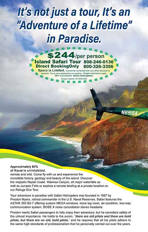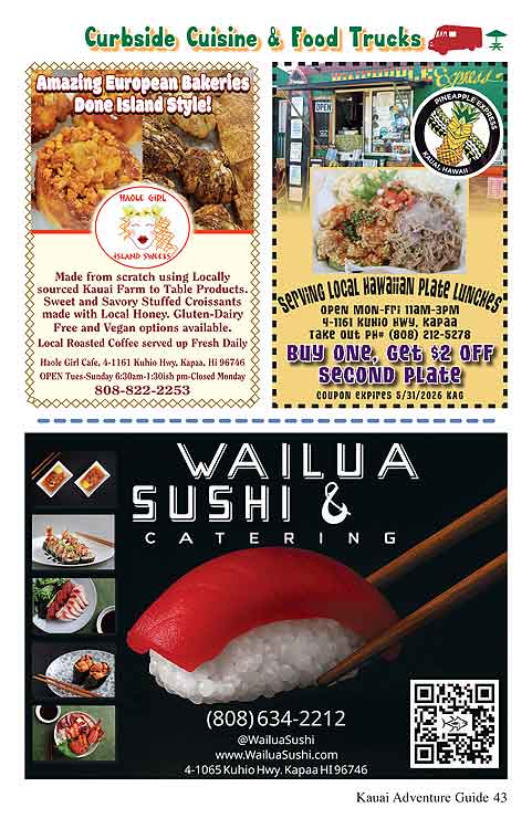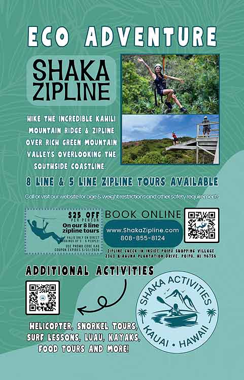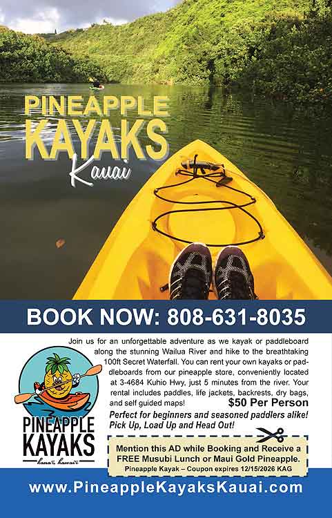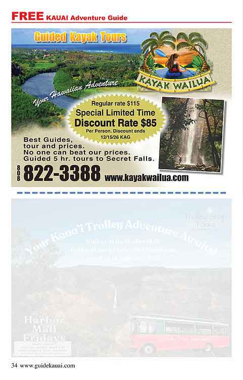FREE Kauai Saver Guide offers Activities, Dining, Services and Shopping!